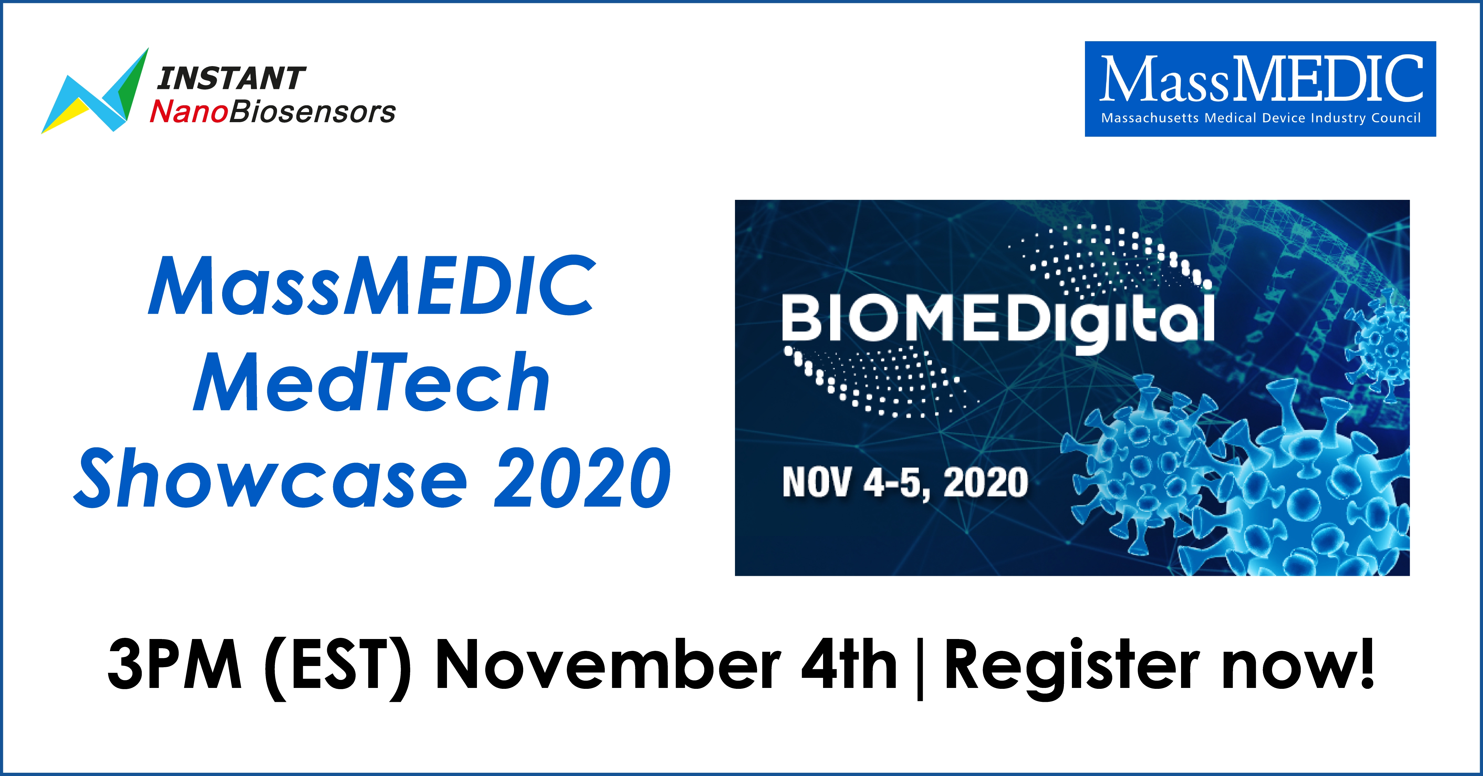 We are proud to announce that we showcase our company and its advantageous technology at the MassMEDIC MedTech Showcase, which is part of the BIOMEDigital online exhibition!