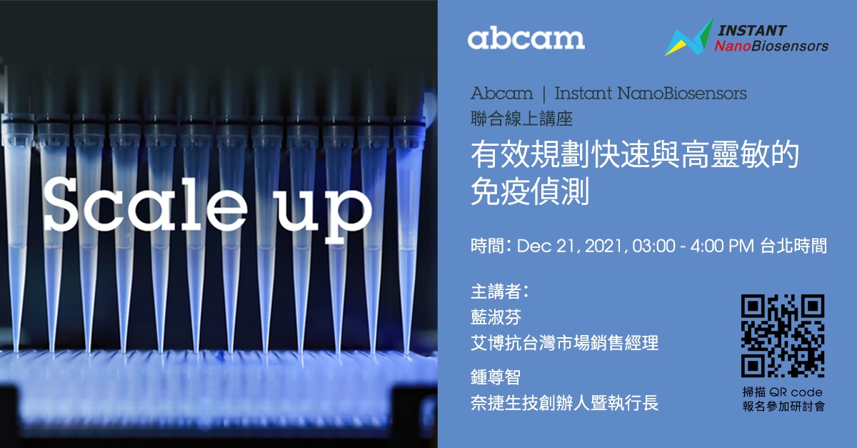 Abcam 與 Merck 精選奈捷生技 FOPPR™ 光纖式偵測技術,偕手打造「快速」篩選與「高靈敏」免疫檢測一站式服務。主講者:藍淑芬,艾博抗台灣市場銷售經理鍾尊智,奈捷生技創辦人暨執行長會議議程:– Abcam 免疫偵測技術的進步– 奈捷生技 FOPPR™ 光纖式技術原理與應用– 快速篩選與高靈敏免疫檢測一站式服務